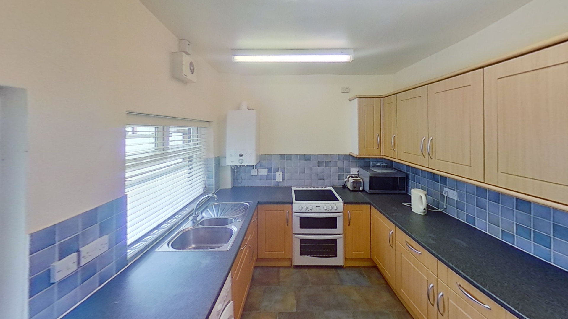 The house has a bright and airy bathroom along with a large fully stocked kitchen.